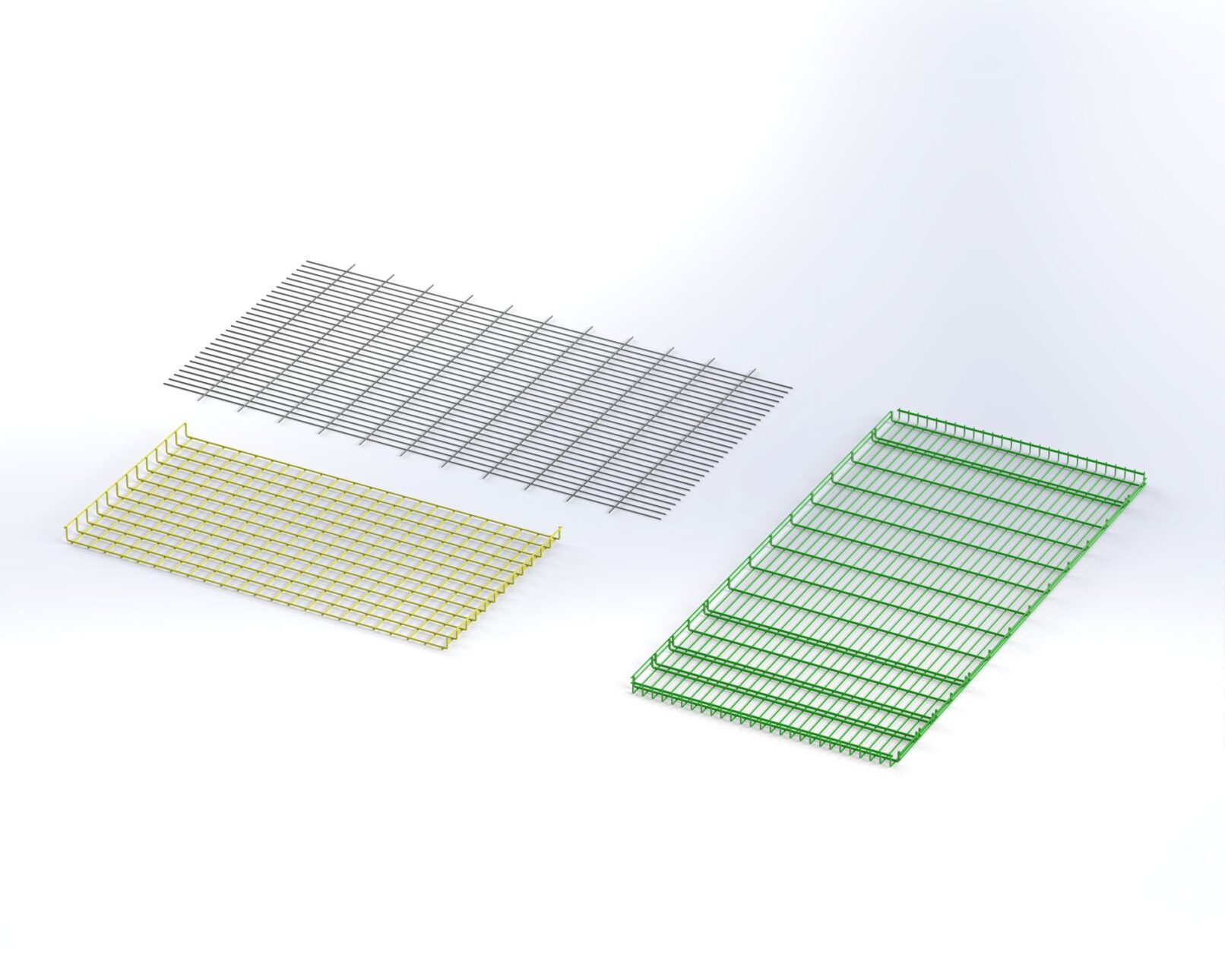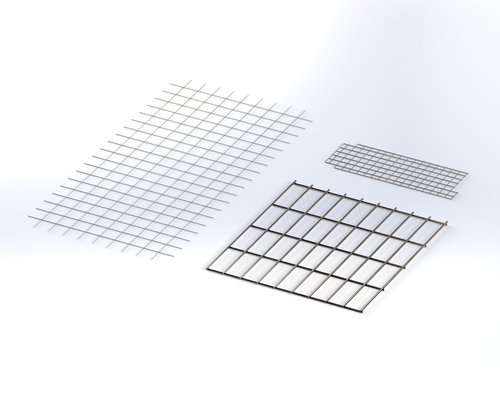 Spot-welded steel wire and stainless steel wire mesh as sheets. Maximum size of sheets 1600×3000 mm. Wire diameter 2.5-8 mm. Mesh size from 20×20 mm (smaller mesh sizes upon agreement).